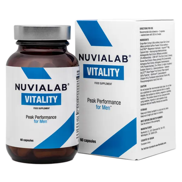 NUVIALAB VITALITY este un supliment alimentar sub formă de capsule, special formulat pentru a susține sănătatea sexuală masculină. Acest produs este conceput pentru a ajuta bărbații să își îmbunătățească performanța și vitalitatea în timpul actului sexual, oferindu-le o senzație de revitalizare și încredere.